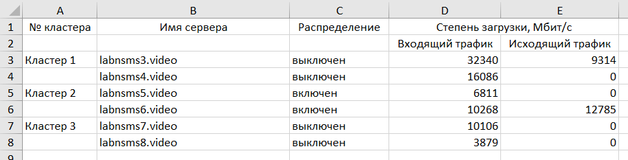 Содержит информацию о загрузке всех медиасерверов, у которых: