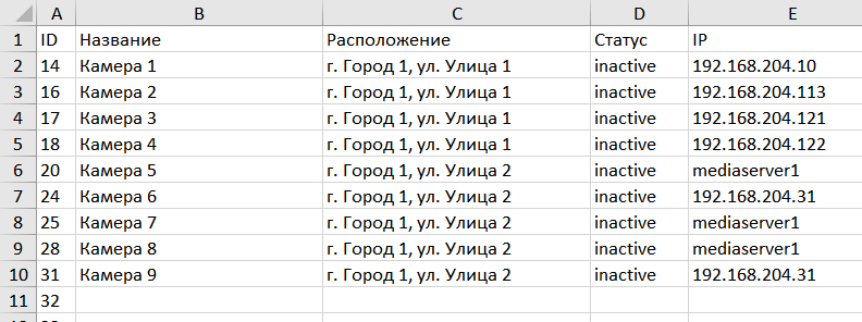 Если отчет будет содержать до 50.000 камер, то отчет сохраняется в файле формата .XLSX. Если количество камер превышает 50.000, то отчет сохраняется в файле формата .CSV.