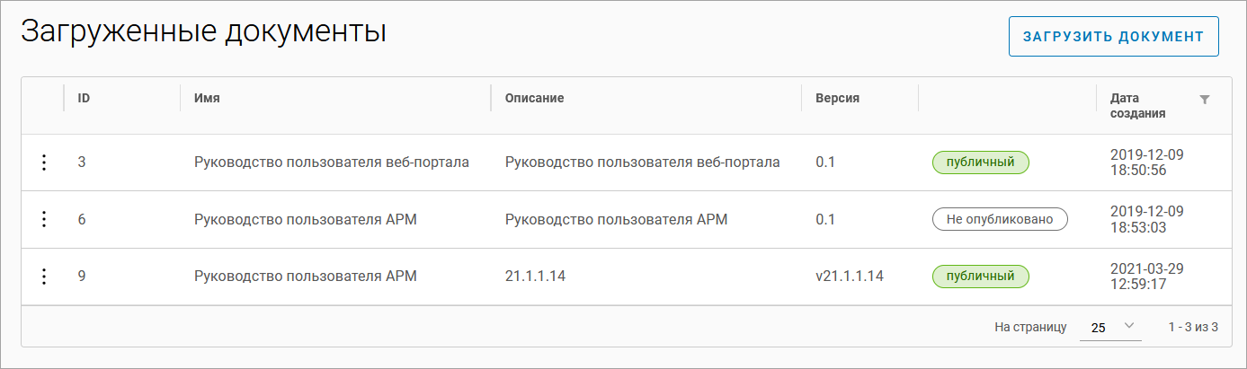 Таблица «Загруженные документы» содержит список документов, которые доступны для скачивания на сайте клиента.