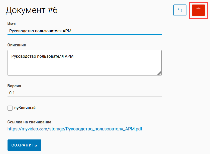 При просмотре загруженного документа отображается ссылка на скачивание файла.