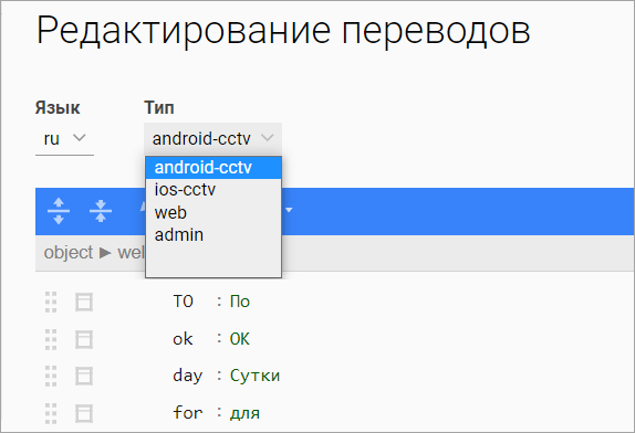 В списке «Тип» выберите интерфейс, в котором следует отредактировать текст: