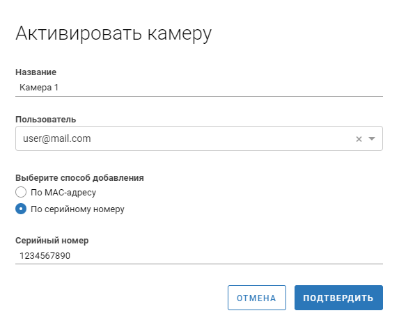 Активация камеры администратором возможна исключительно после предоставления данному администратору пользователем камеры MAC-адреса или серийного номера. Такой сценарий возможен при обращении пользователя в службу поддержки.