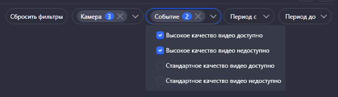 Для оперативного поиска событий на каждой вкладке предусмотрены фильтры.