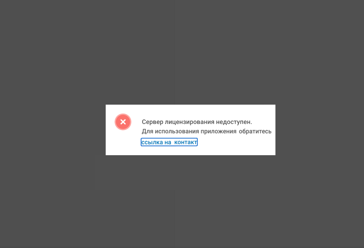 При отсутствии связи с сервером лицензирования на экране отображается сообщение вида: