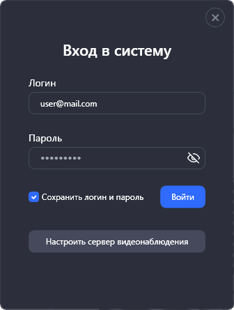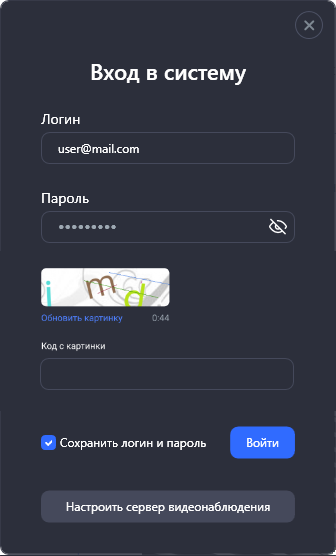 Далее закройте форму настройки сервера видеонаблюдения для возврата к форме авторизации.