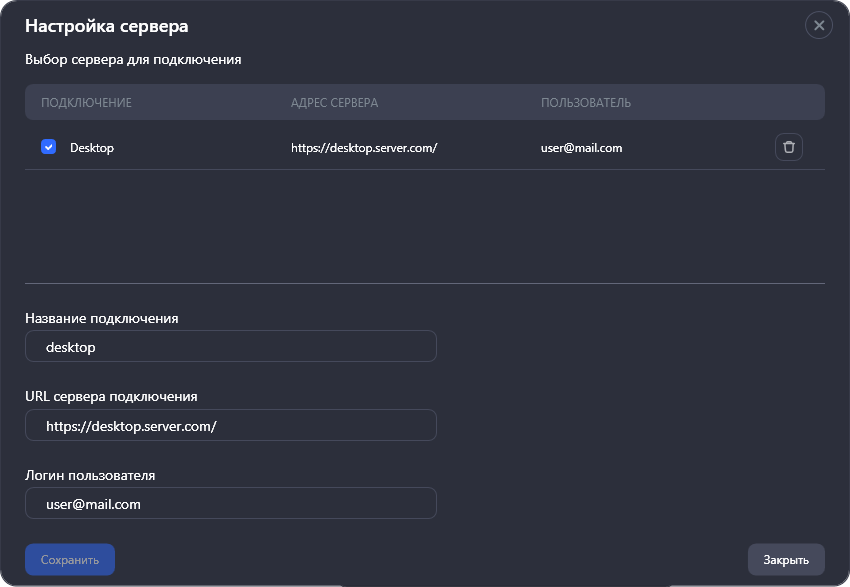 После заполнения всех полей нажмите «Сохранить». В результате будет добавлено новое подключение с заданными параметрами.