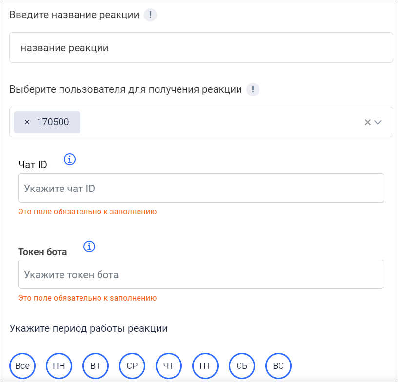 Настройка реакции «Отправить сообщение в Telegram». Web-пользователь