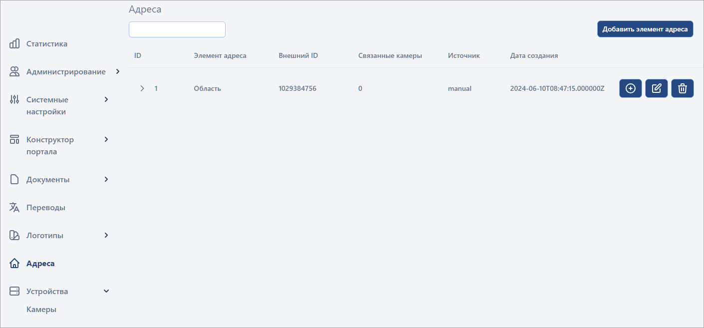 Сформированное в данном разделе дерево адресов будет доступно на платформе видеонаблюдения в Web Admin VMS. Любые изменения, связанные с корневыми или дочерними элементами адреса, также автоматически синхронизируются и отображаются на платформе видеонаблюдения.