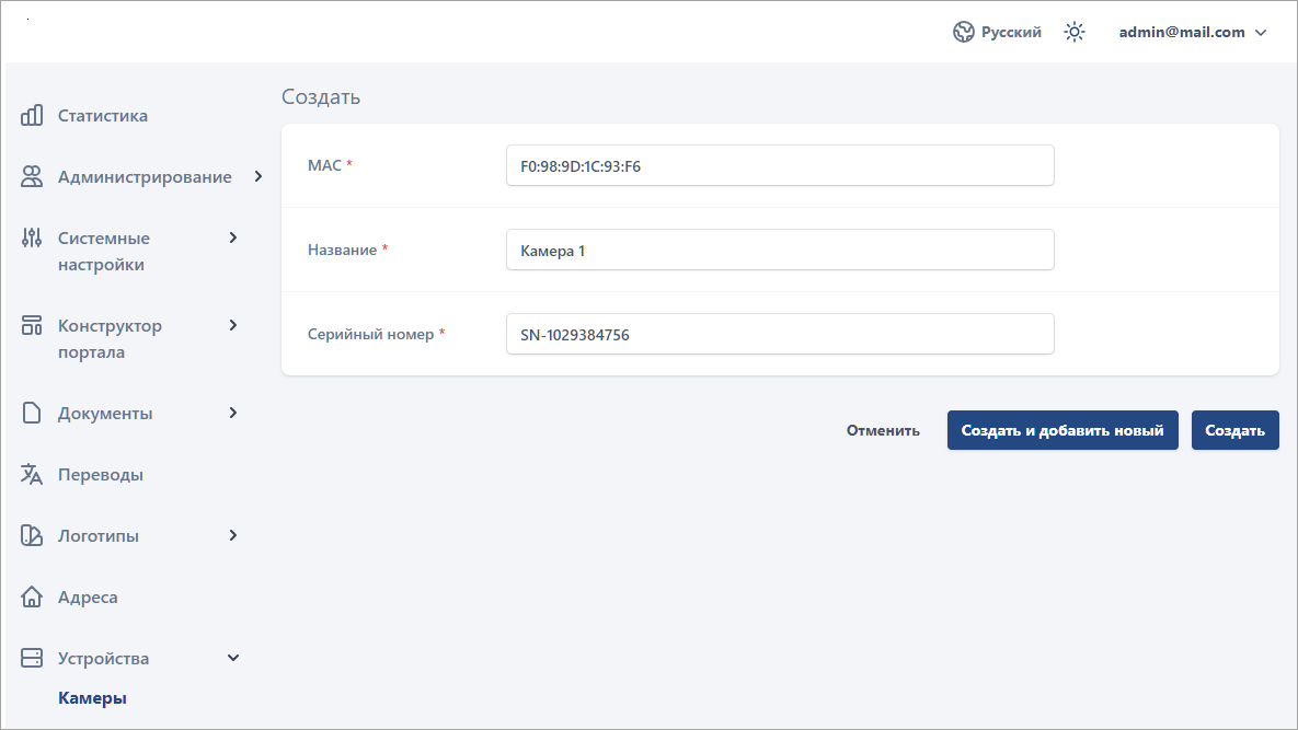 Создание камеры предполагает создание только сущности камеры на платформе видеонаблюдения. После синхронизации созданной камеры ее необходимо сконфигурировать на платформе видеонаблюдения.
