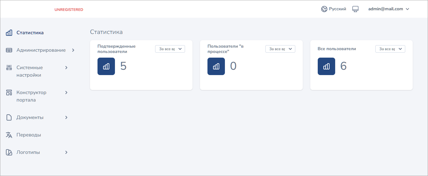 • Все пользователи – общее количество пользователей, зарегистрированных на User Portal.
