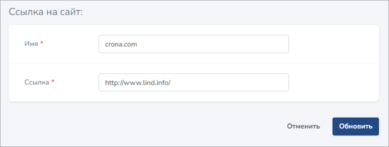 Измените название ссылки и адрес. Для сохранения изменений нажмите «Обновить».
