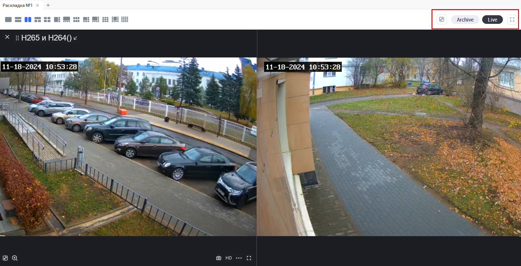 Переход к просмотру камер раскладки в режиме «Archive». Для этого нажмите кнопку «Archive» в правом верхнем углу.