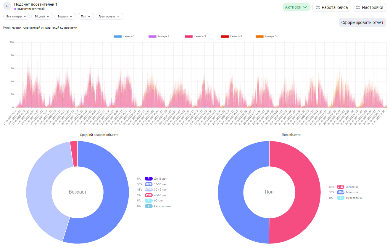 Просмотр кейса с видом аналитики «Подсчет посетителей»