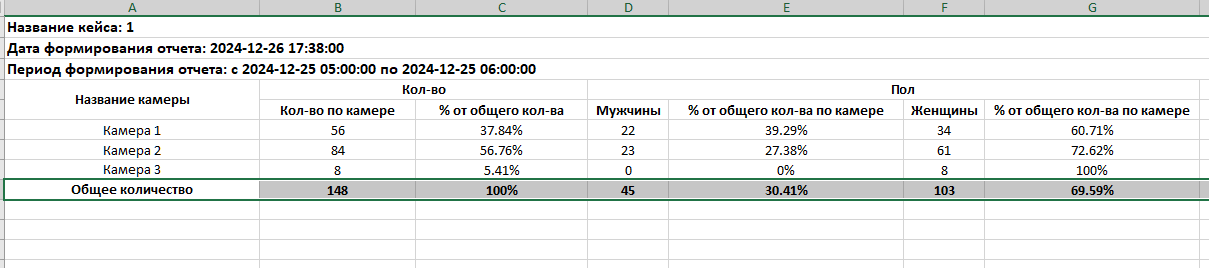 После формирования отчета отобразится сообщение со ссылкой на отчет. Нажмите, чтобы скачать отчет в формате XLXS. Примерный вид отчета: