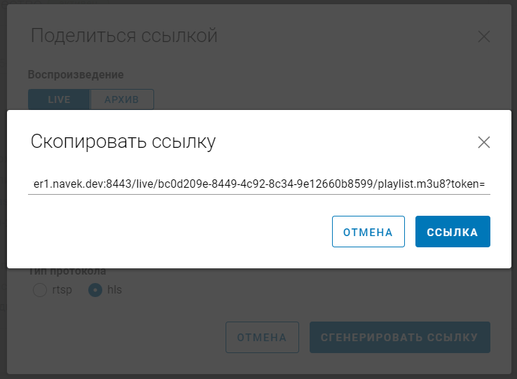 Функция предназначена для предоставления доступа внешнему незарегистрированному пользователю к просмотру видео с камеры. Ссылка формируется для каждого потока камеры отдельно.