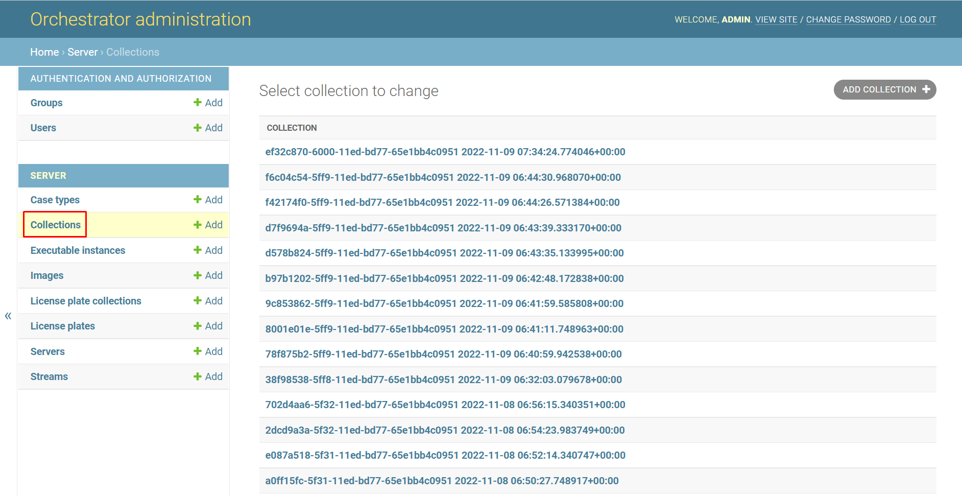 Страница «Collections» содержит коллекции изображений, загруженных на страницу «Images». Коллекции также формируются на платформе VMS.